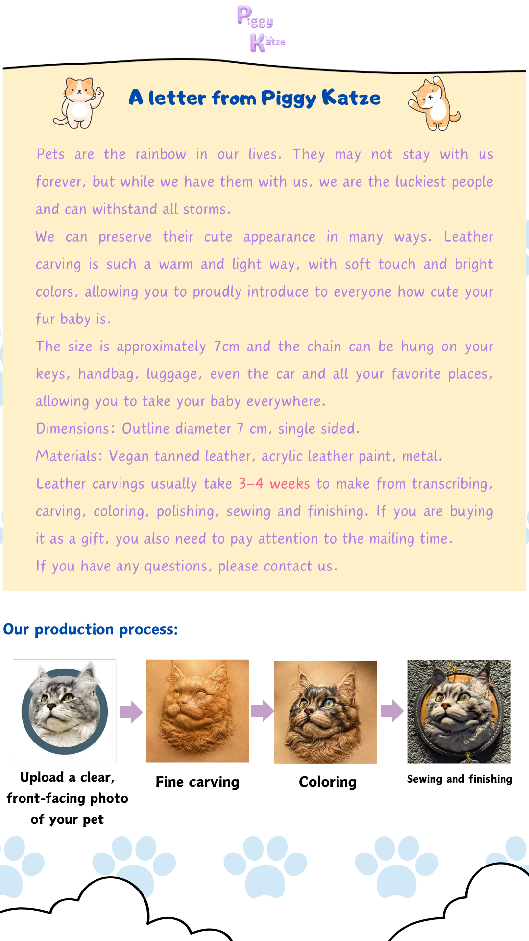 Please indicate your order number in the subject line of the email, and send the above defective photos or videos to us as far as possible to ensure the clarity of the photos or videos. The email address is Piggykatze@support.com.